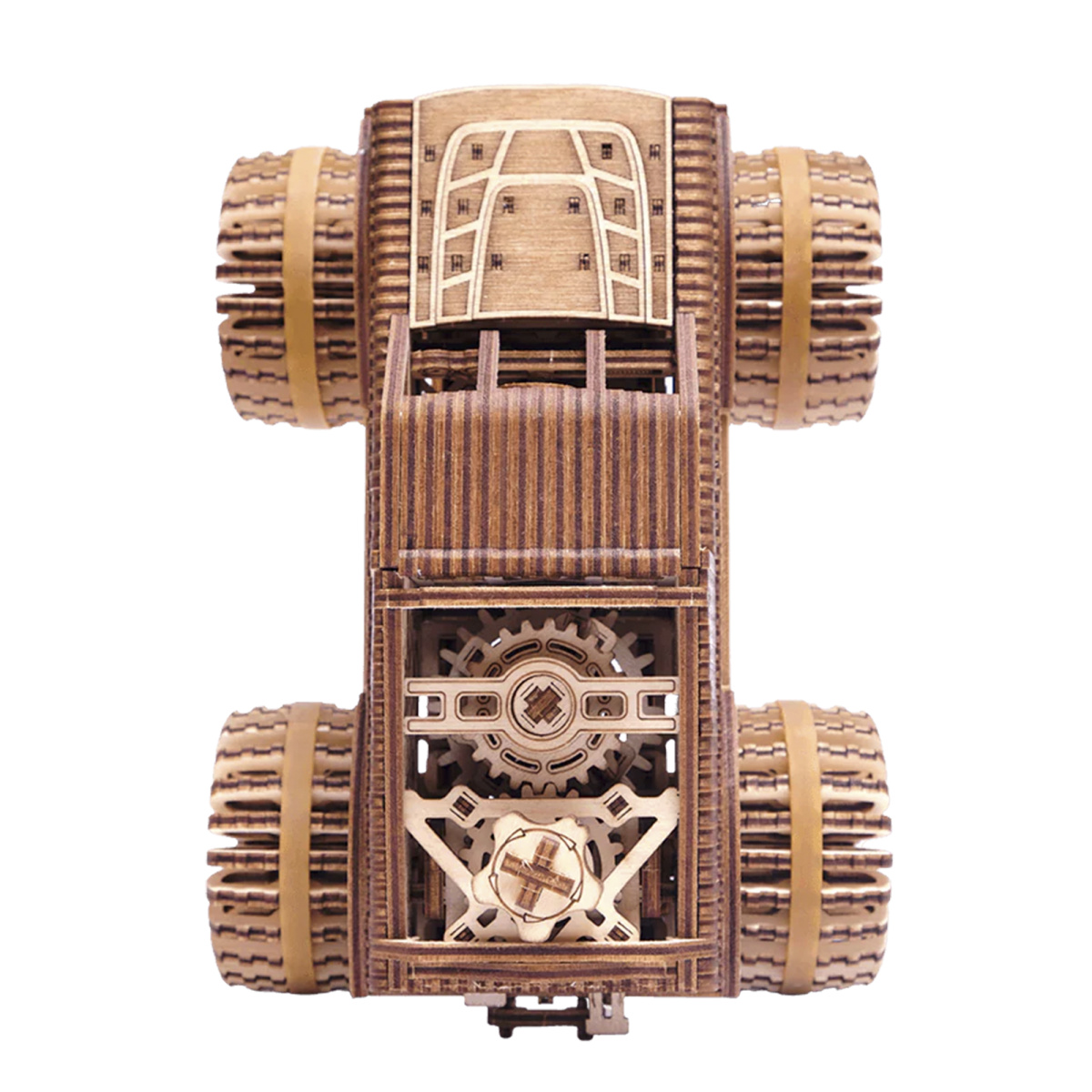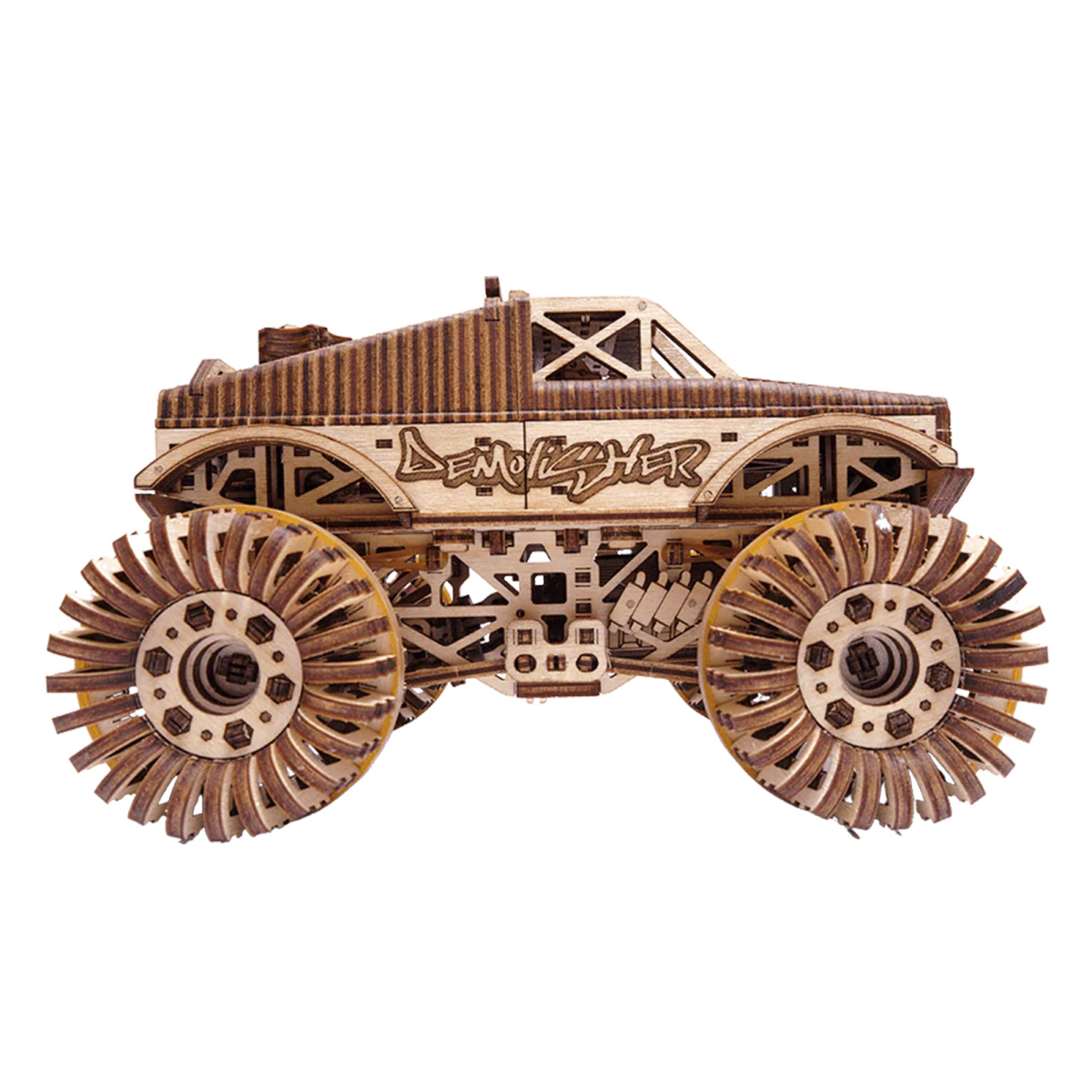 Настоящий внедорожник: Главная черта любого монстр-трака - огромные колёса и усиленная подвеска, способная преодолевать самые сложные участки трассы. В этой деревянной модели инженеры WoodTrick полностью сохранили эту особенность: массивные колёса отлично вращаются и обеспечивают надёжное сцепление с поверхностью при движении.