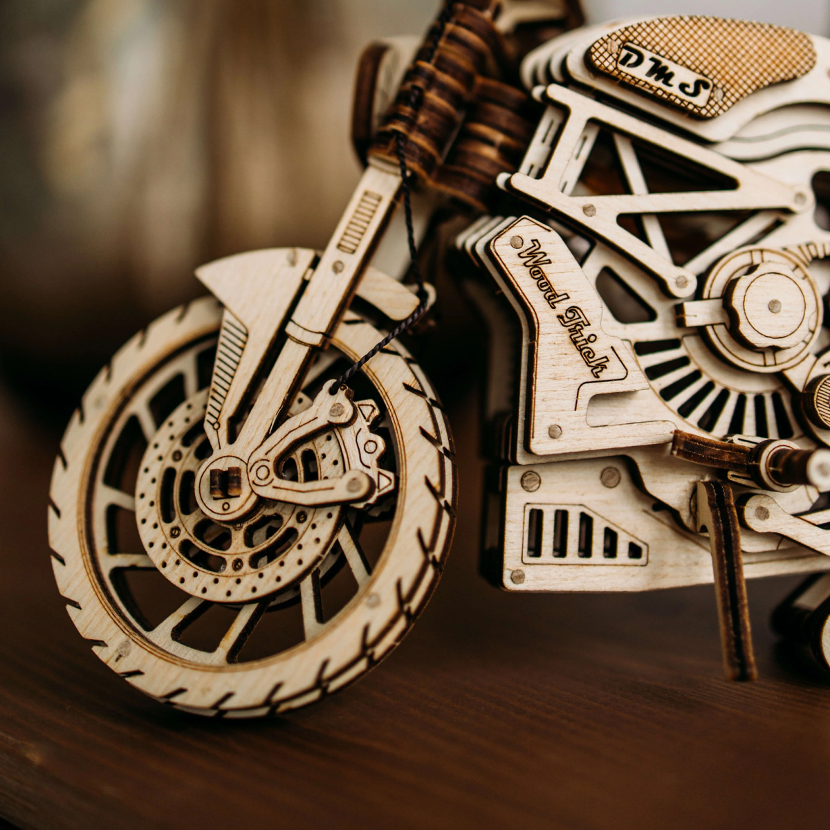 Эта модель станет отличным подарком для байкеров, коллекционеров и всех, кто увлекается механикой. Она не только украсит интерьер, но и подарит несколько часов увлекательной сборки. А возможность привести мотоцикл в движение и рассмотреть работу шестерёнок понравится не только детям, но и взрослым. Начните свою коллекцию транспортных средств WoodTrick с этого стильного байка или дополните уже существующую!