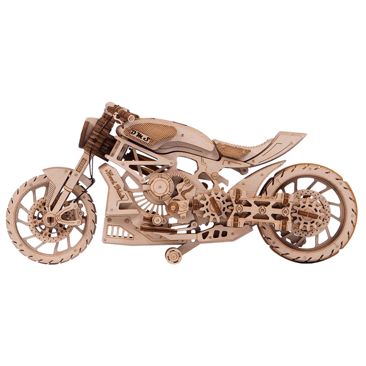 Ощутите дух скорости и свободы с этим изящным деревянным конструктором! Модель "Мотоцикл DMS" от WoodTrick - это не просто уменьшенная копия легендарного байка, а настоящий интерактивный механизм, который порадует всех поклонников мототехники.