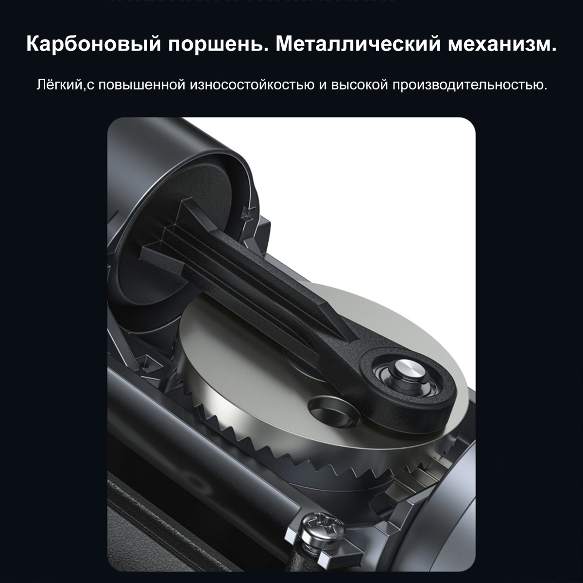- Долговечная конструкция:Усиленный карбоновый поршень и металлический мотор на постоянных магнитах по технологии DC-Boost обеспечивают высокую производительность и износостойкость.