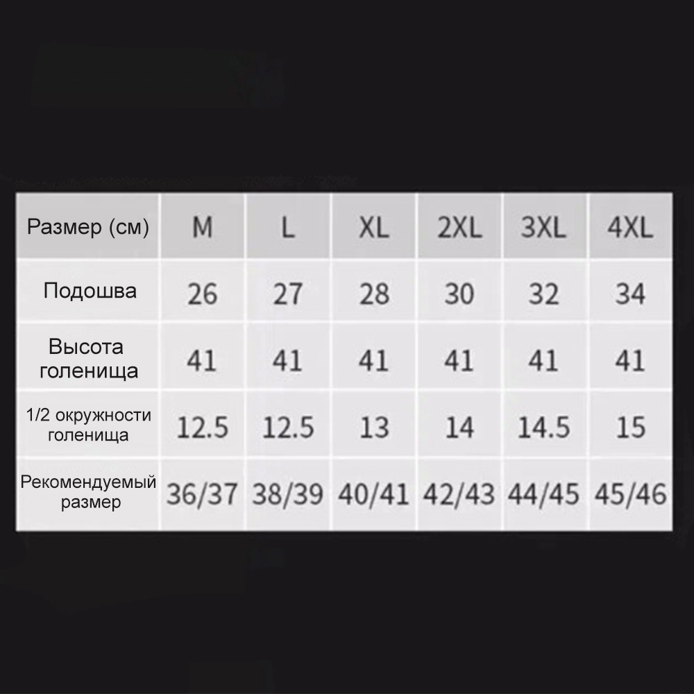 - Высота голенища: 41 см (все размеры)