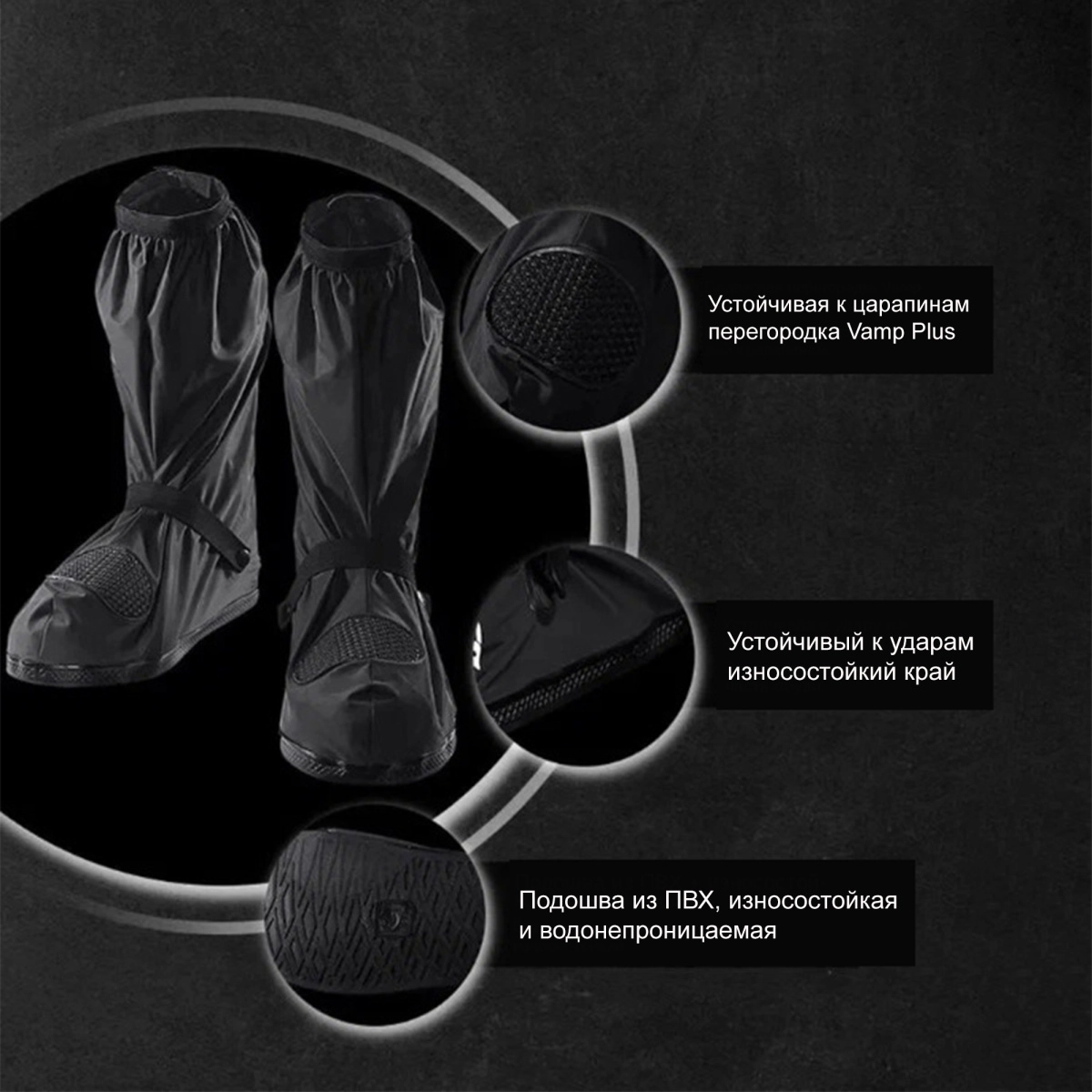 - Износостойкая подошва из ПВХ- нескользящая, водонепроницаемая и долговечная. Чехлы не протираются при ходьбе.