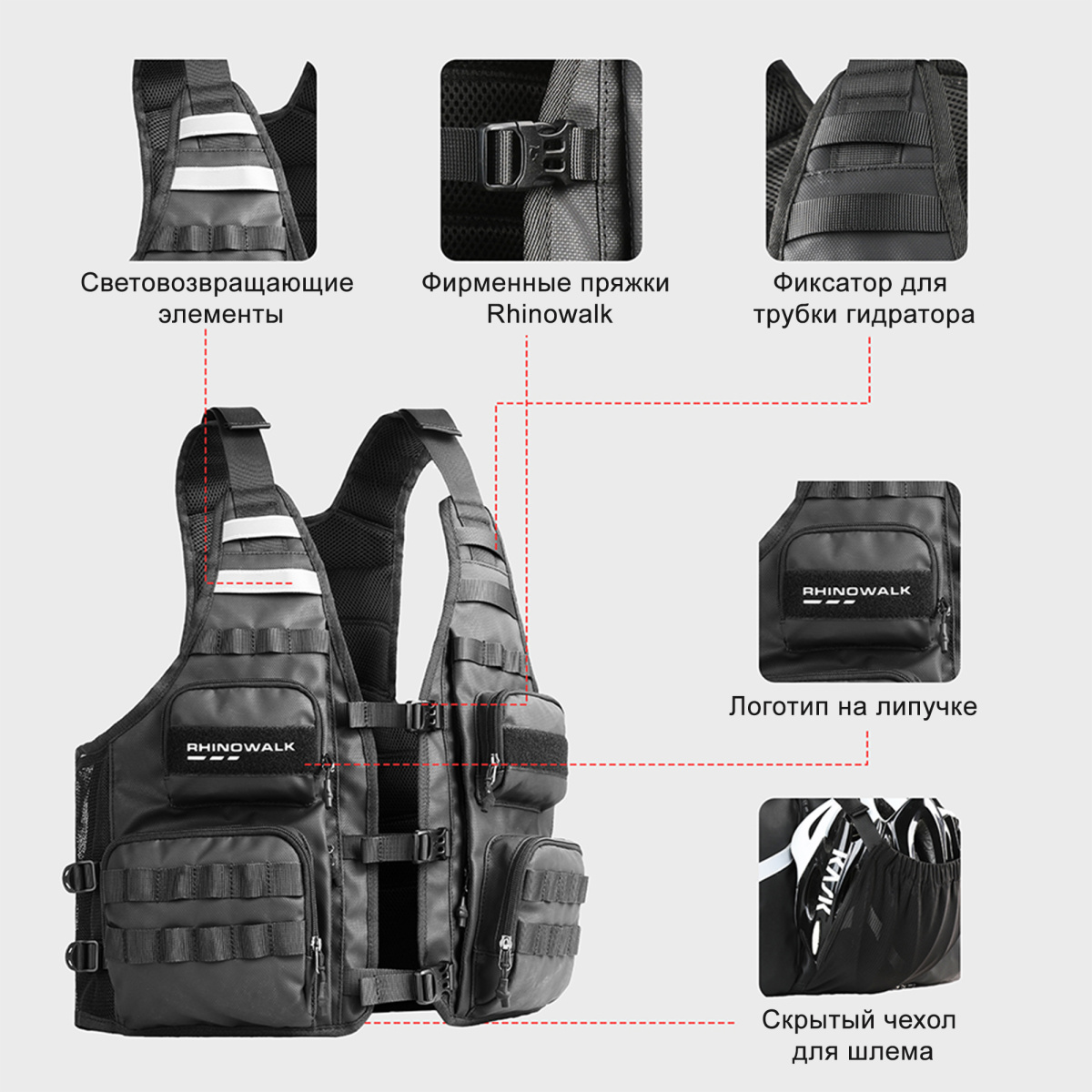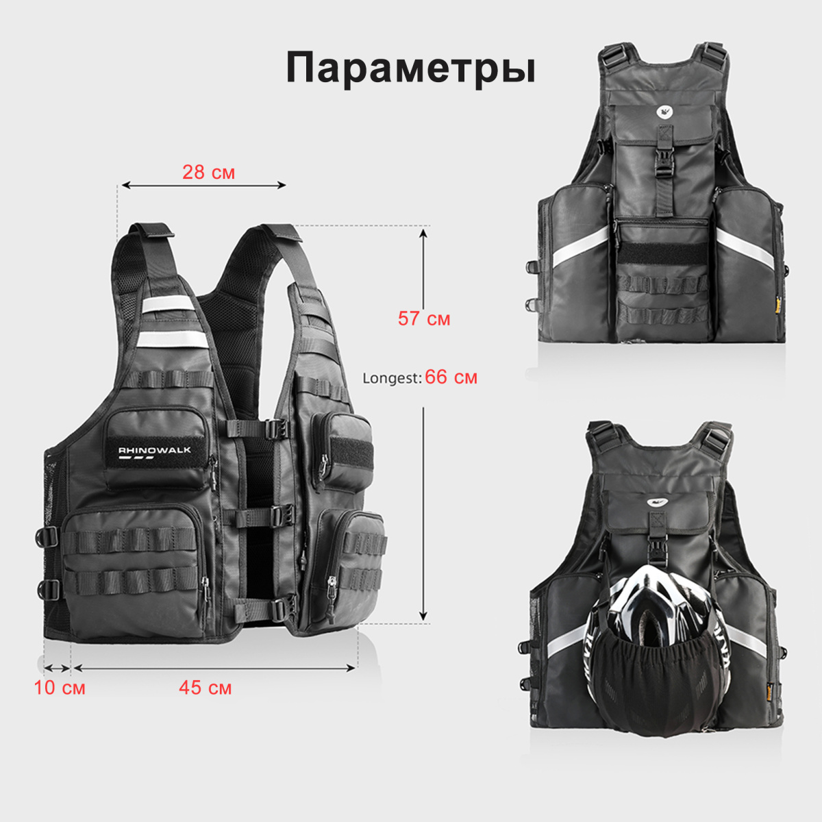 Для активных мотоциклистов компания RHINOWALK предлагает продуманный жилет M1012BK. Это не просто экипировка, а полноценная система хранения и гидрации, которая позволяет всегда иметь под рукой воду, инструменты и необходимые мелочи. Благодаря удобной конструкции и регулировкам жилет одинаково хорош для дальних путешествий и повседневных поездок по городу.