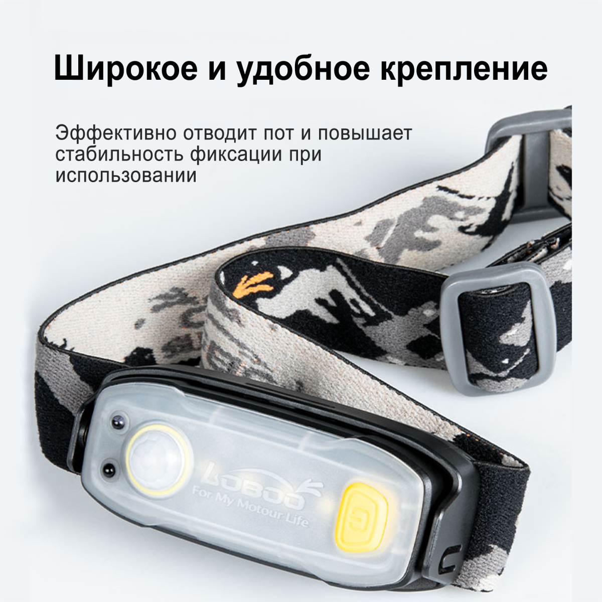 - Умный режим с датчиком жестов - автоматическое включение/выключение при движении руки (работает с налобным держателем).