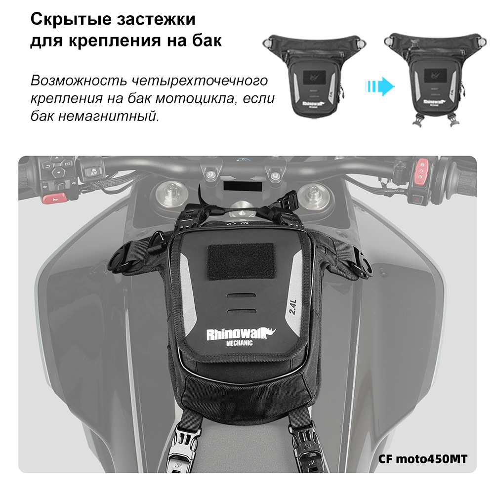 Важной особенностью всей серии Mechanic является оснащение универсальной системой крепления MOLLE. Это позволяет не только носить сумку на бедре или крепить на бак, но и интегрировать её с другими сумками или рюкзаками RhinoWalk, создавая модульные конфигурации под конкретные задачи. Такая универсальность особенно оценят те, кто любит кастомизировать свою экипировку.